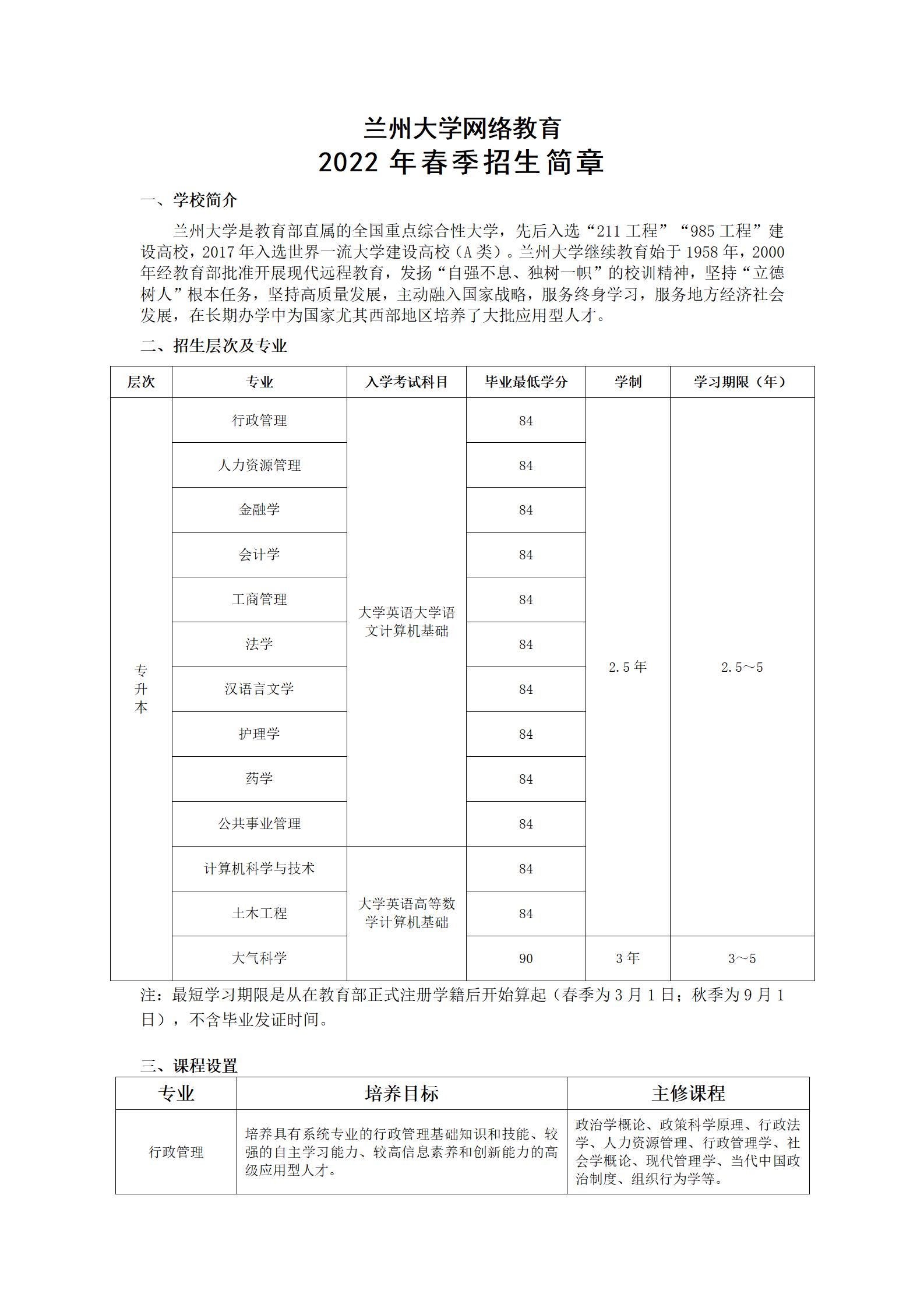 蘭州大學(xué)網(wǎng)絡(luò)教育2022年春季招生簡(jiǎn)章